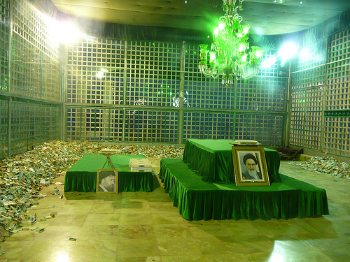 Khomeiny meurt d'une hémorragie interne en 1989 et se fait enterré au grand cimetière de Téhéran. Ses amis édifient sur lui un mausolée et une mosquée pour en faire l'attraction touristique principale de la capitale.